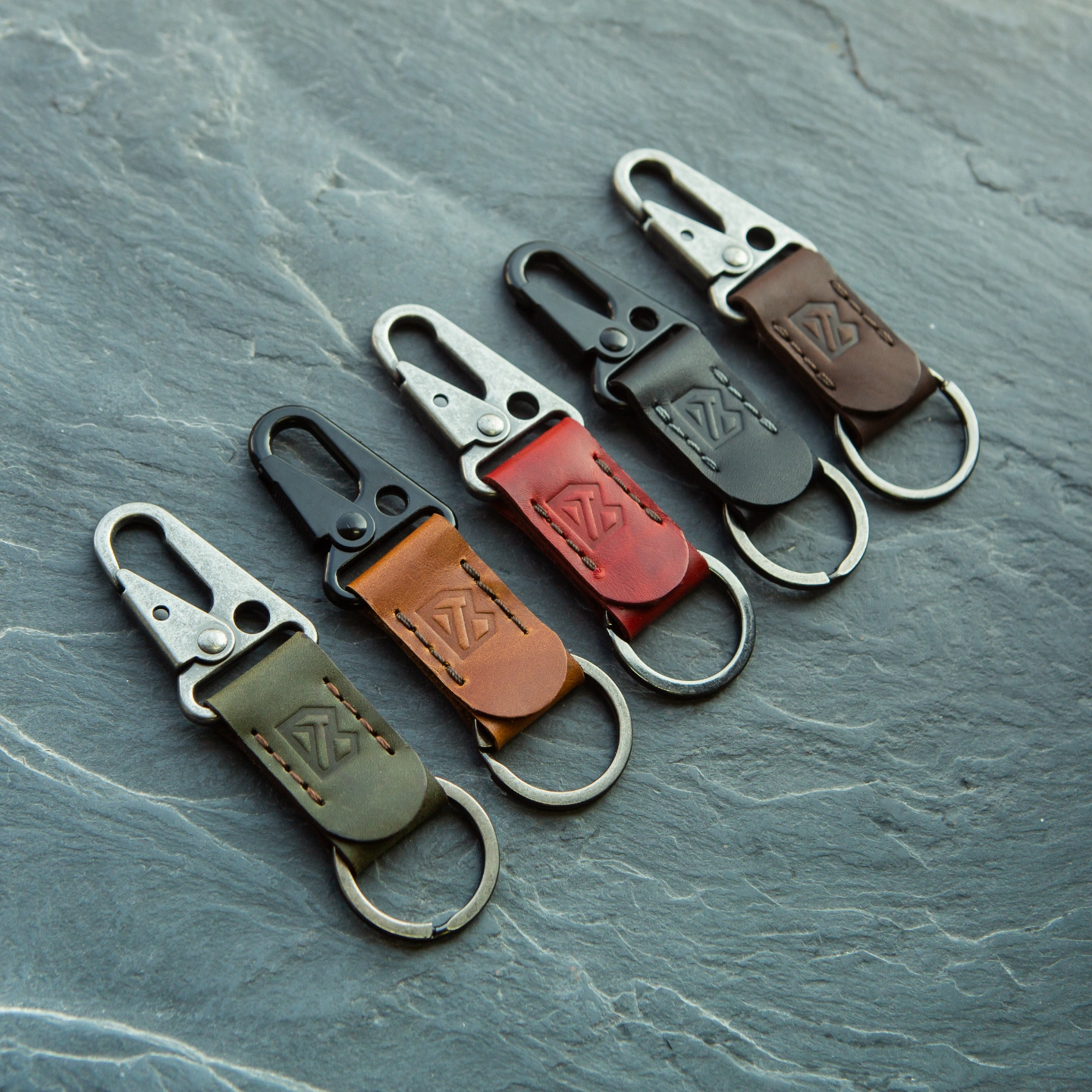 555 Keyring is crafted from top grain original leather and will age beautifully. It is fitted with a matte black sturdy HK key hook and keyring which provides superior strength and durability.