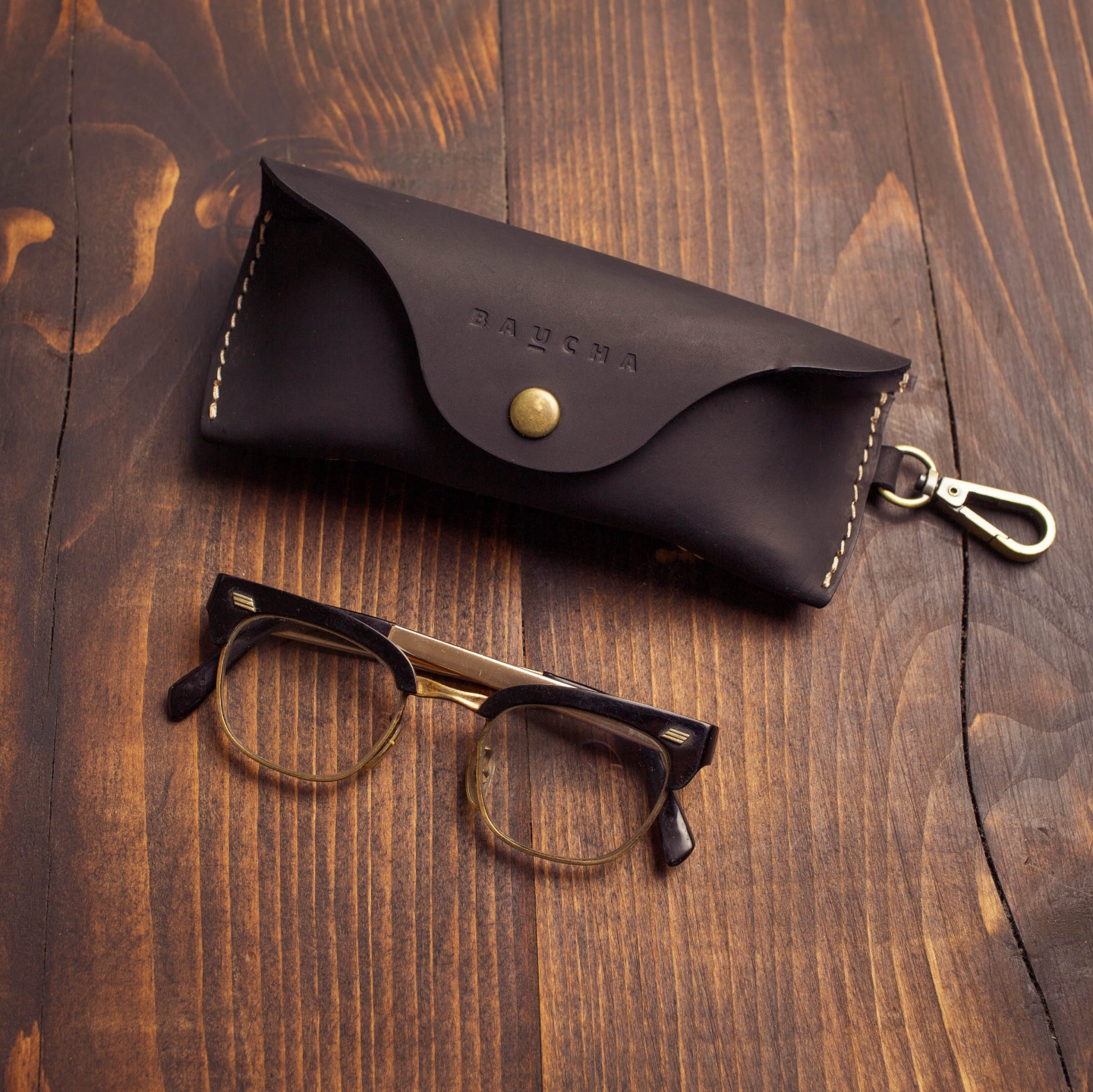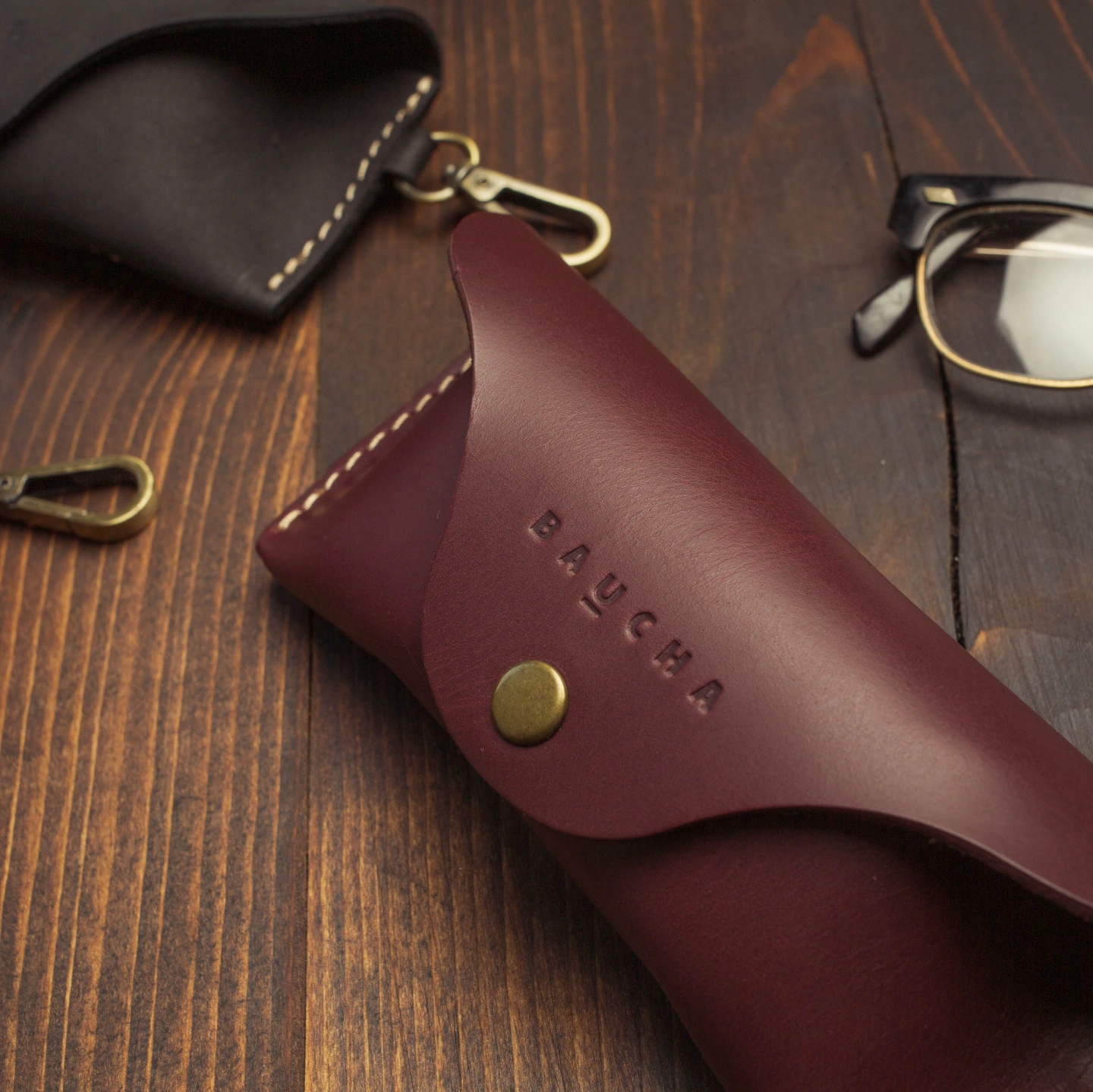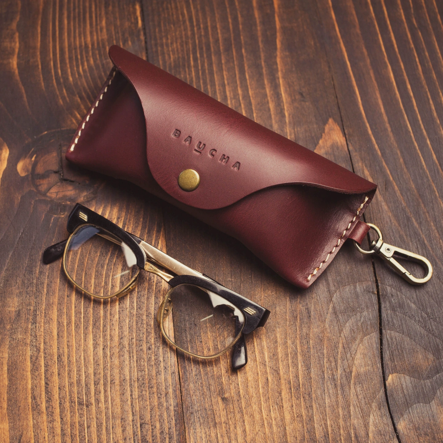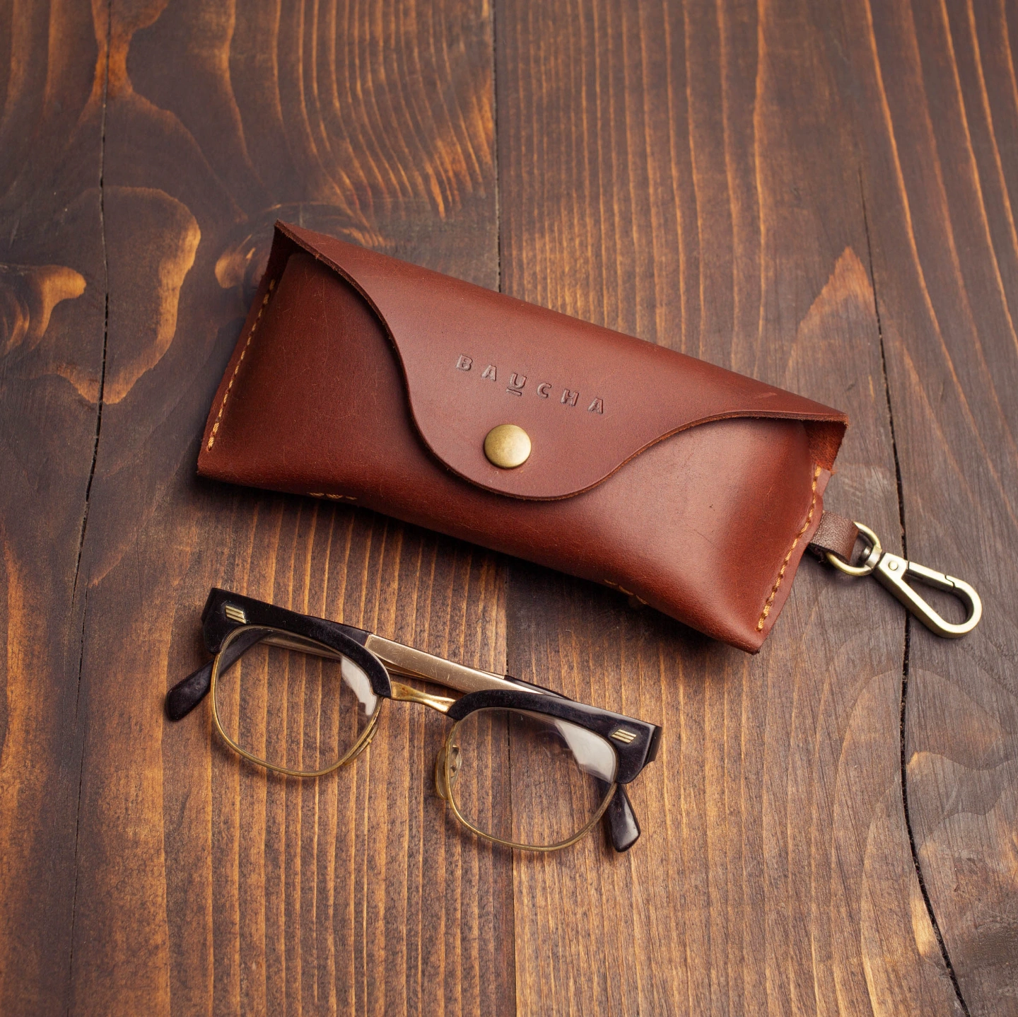 This handcrafted round leather glass case is made from premium top-grain original leather. Designed with an attached hook, it can be easily clipped to your pants, belt loop, or bag-- stylish, practical, and always within reach.