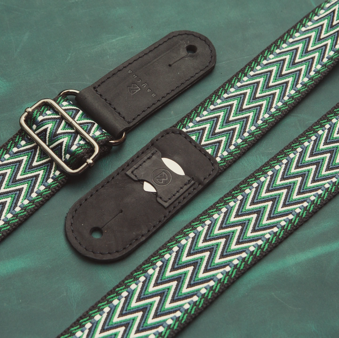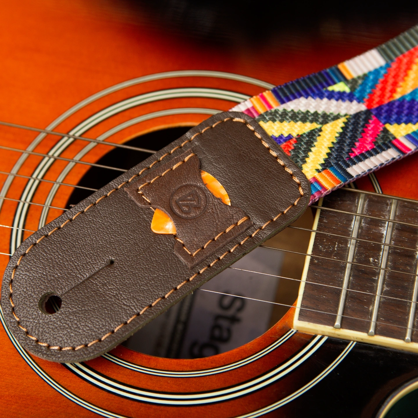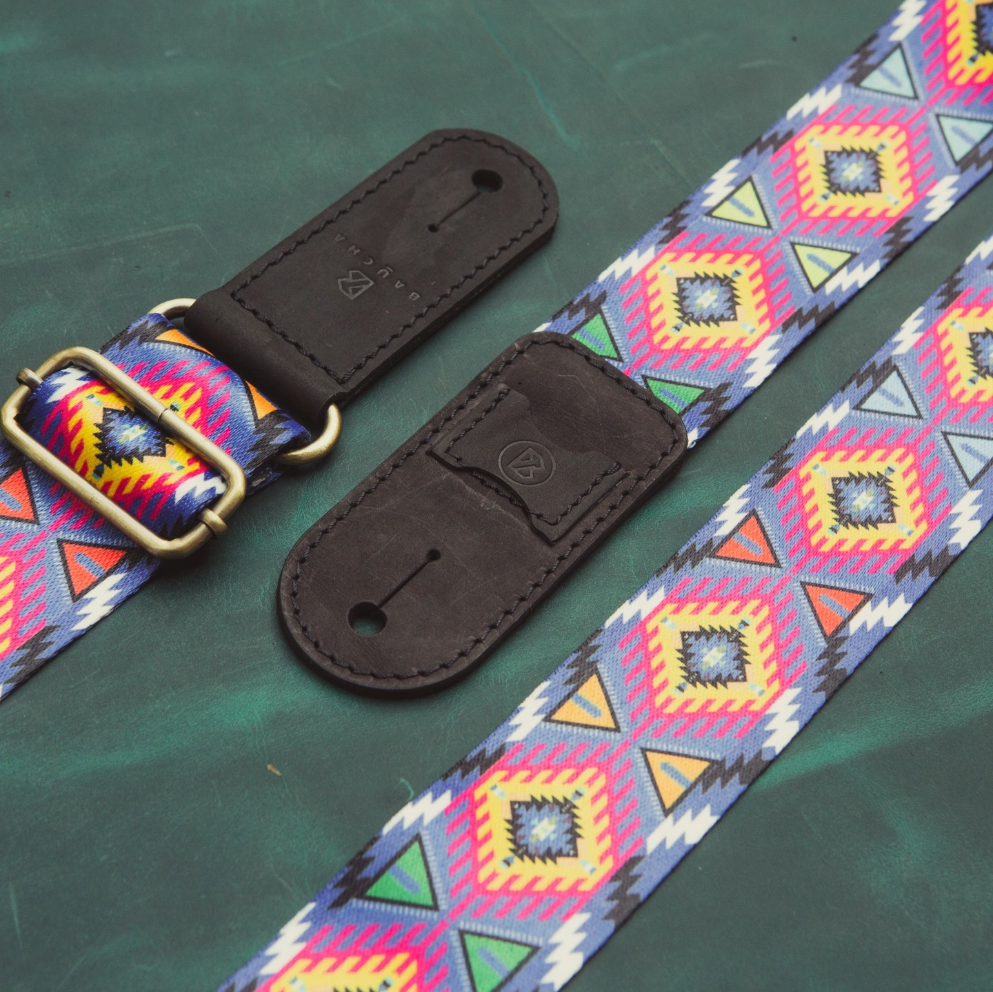 Elevate your style with this bold, durable guitar strap featuring intricate tribal patterns. Crafted from high-quality materials like cotton and leather, it offers comfort and reliability for every performance. With striking geometric designs and earthy tones, this strap adds a unique cultural touch to your instrument. Adjustable length for a perfect fit. Ideal for musicians looking to stand out!